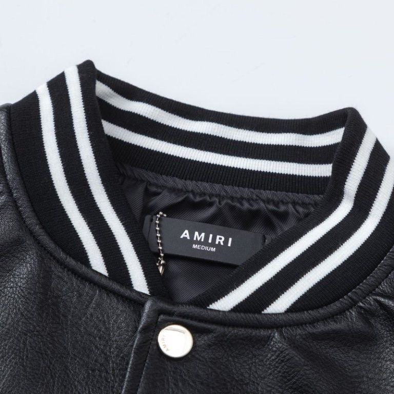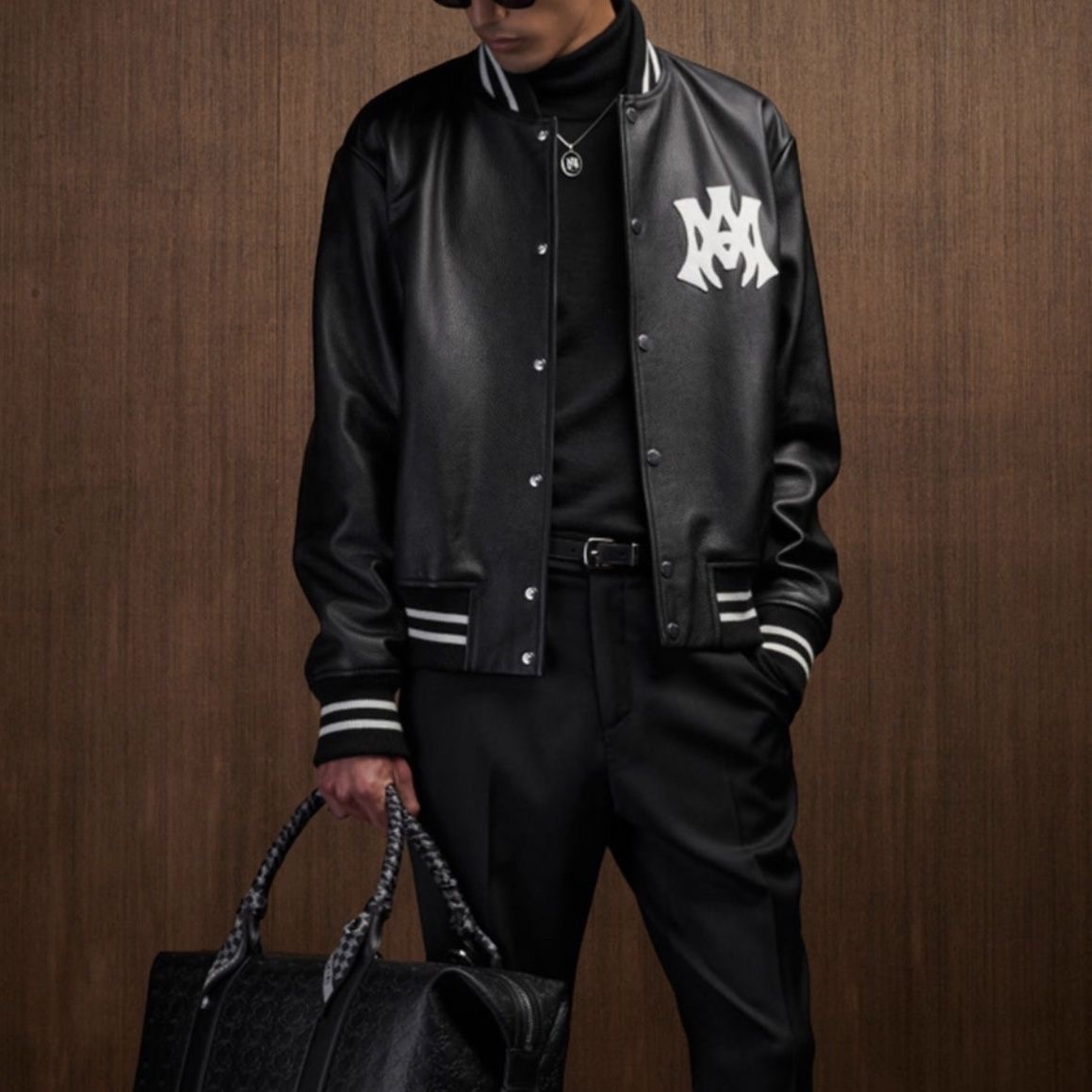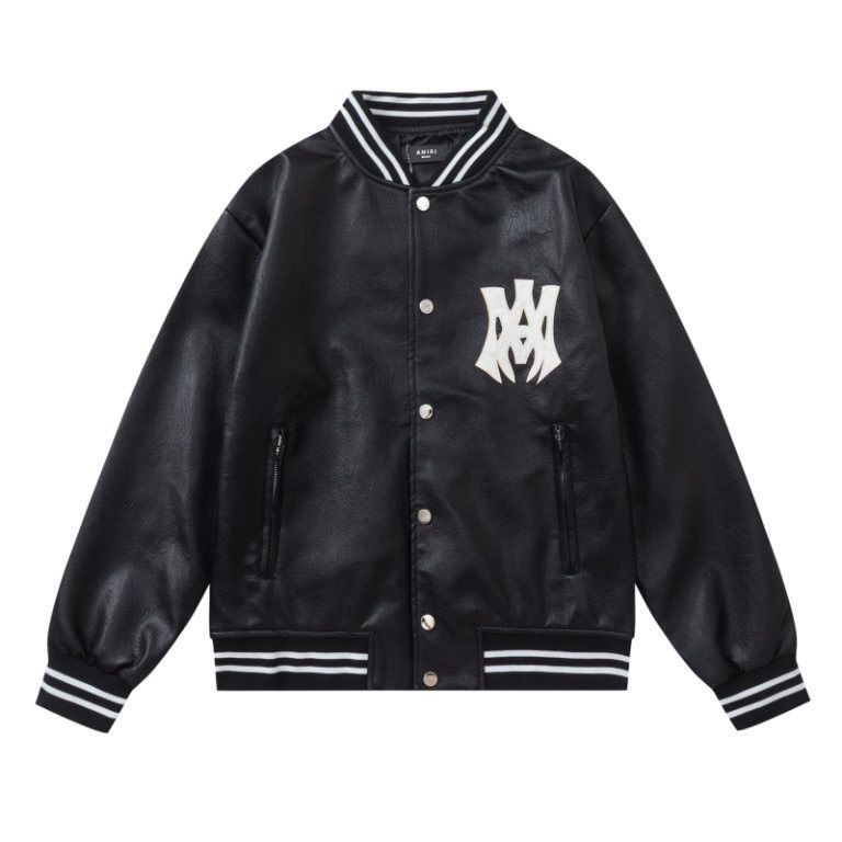 • AMIRI single-button patch-stitched loose-sleeved PU leather long-sleeve coat with wide shoulders