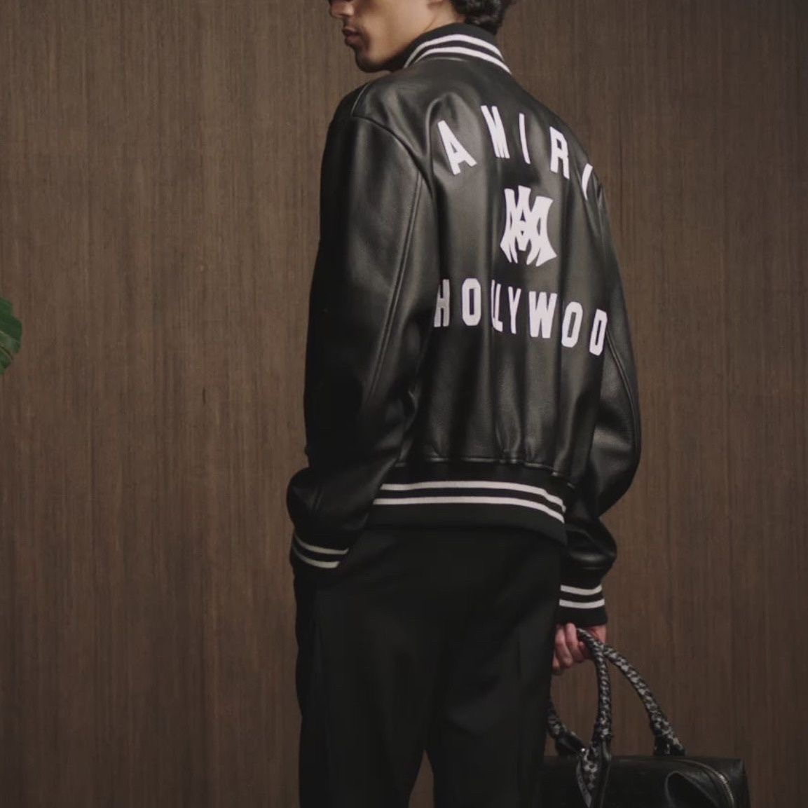 Home / Amiri / AMIRI single-button patch-stitched loose-sleeved PU leather long-sleeve coat with wide shoulders