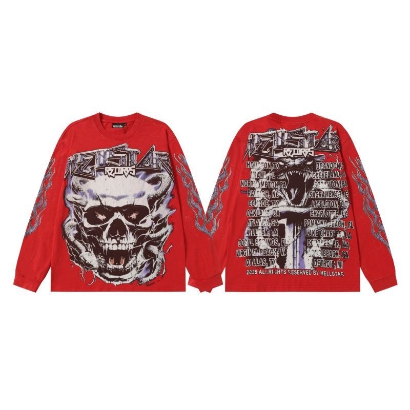 Hellstar Spring and Autumn Retro Skull Long Sleeve T-shirt Base Shirt Foreign Trade
