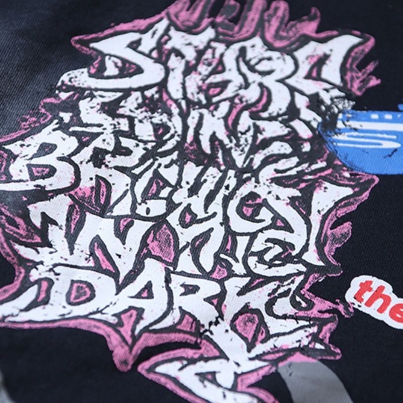 Hellsta Hellstar Street Hip Hop Washed, Used, Hot Diamond Printed Short Sleeve T-shirt Trendy