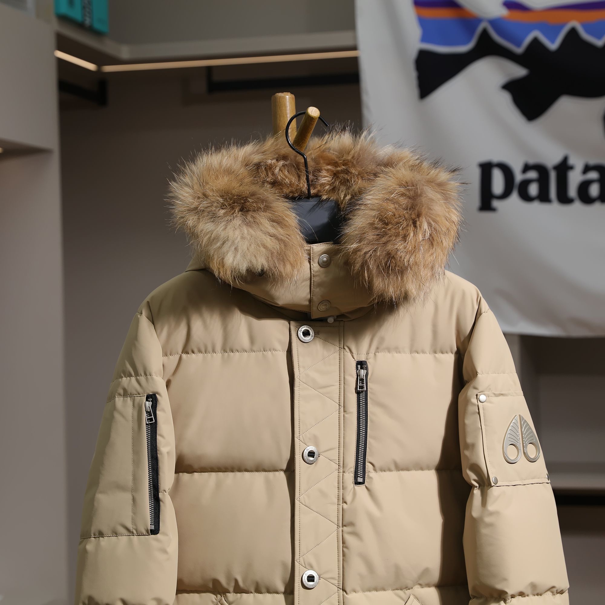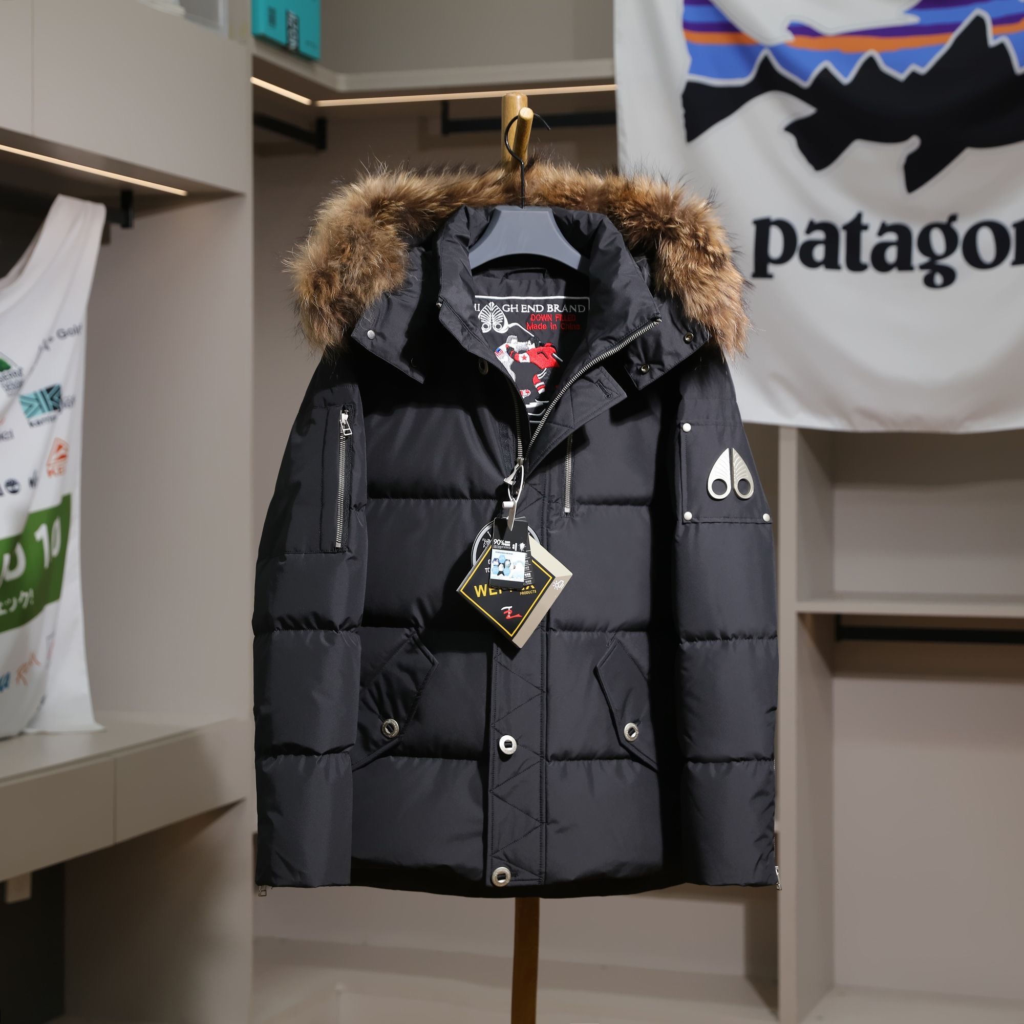 Moose Knuckles real fur collar thickened warm 90 white duck down hooded down jacket
