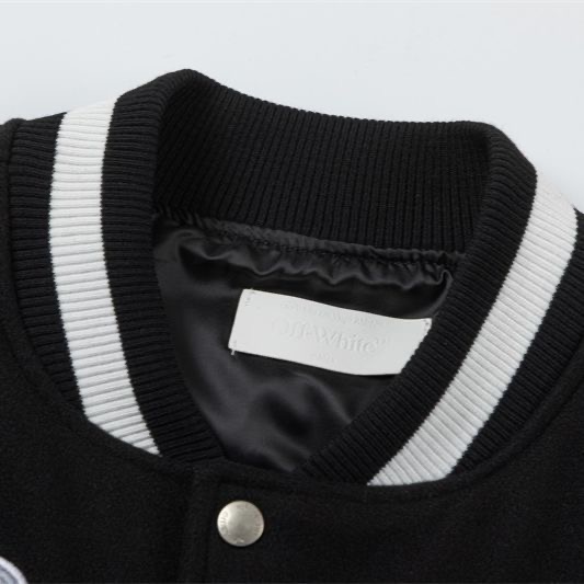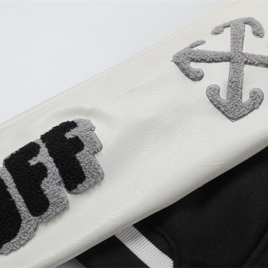 OFF white autumn and winter couple embroidered patchwork baseball jacket outerwear